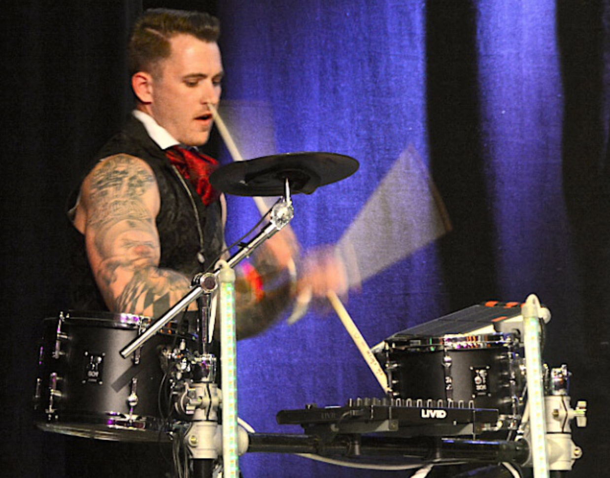 When performing live, his electronic drums are the main focus. Through combining them with the latest technology he is able to build a show which will take the audience on a breathtaking journey.