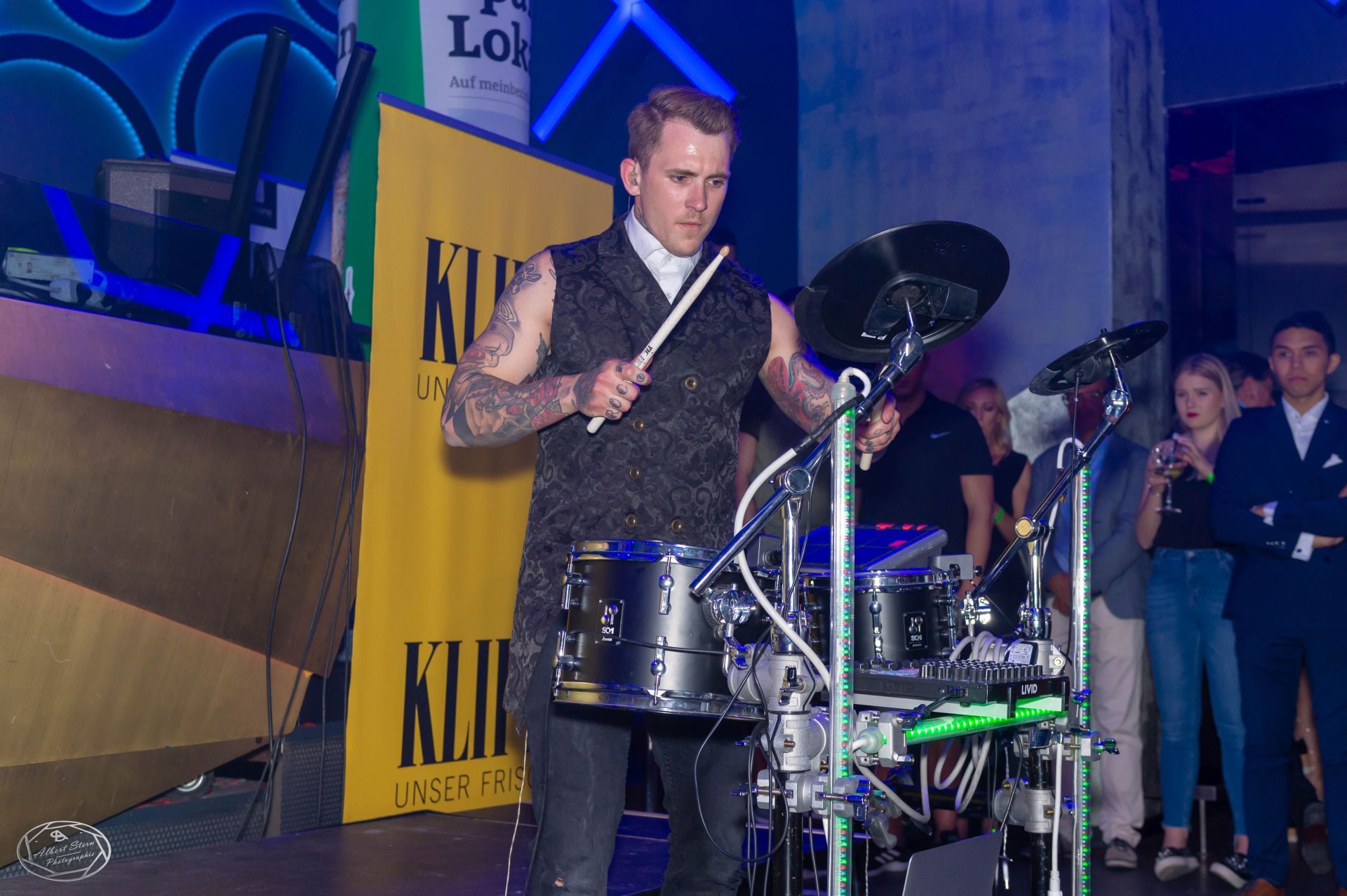 When performing live, his electronic drums are the main focus. Through combining them with the latest technology he is able to build a show which will take the audience on a breathtaking journey.